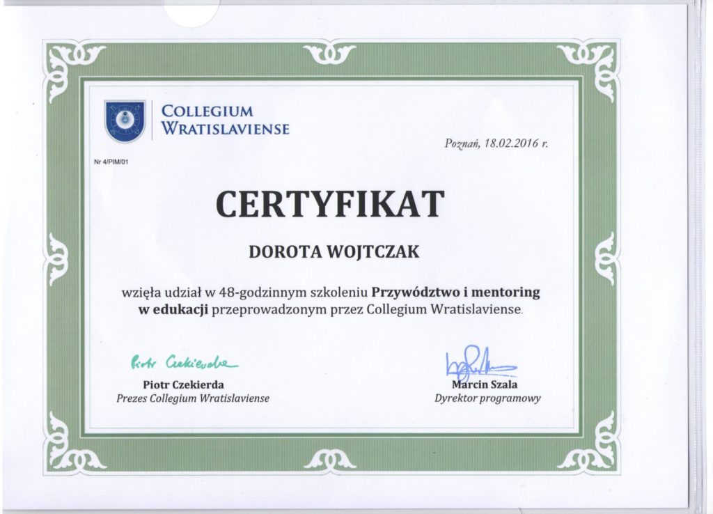 „Trener najwyższej klasy – wysoka kultura osobista, ciepło, życzliwość i umiejętność przekazywania wiedzy. Uświadomiłam sobie wiele spraw, których nie byłam wcześniej świadoma.”